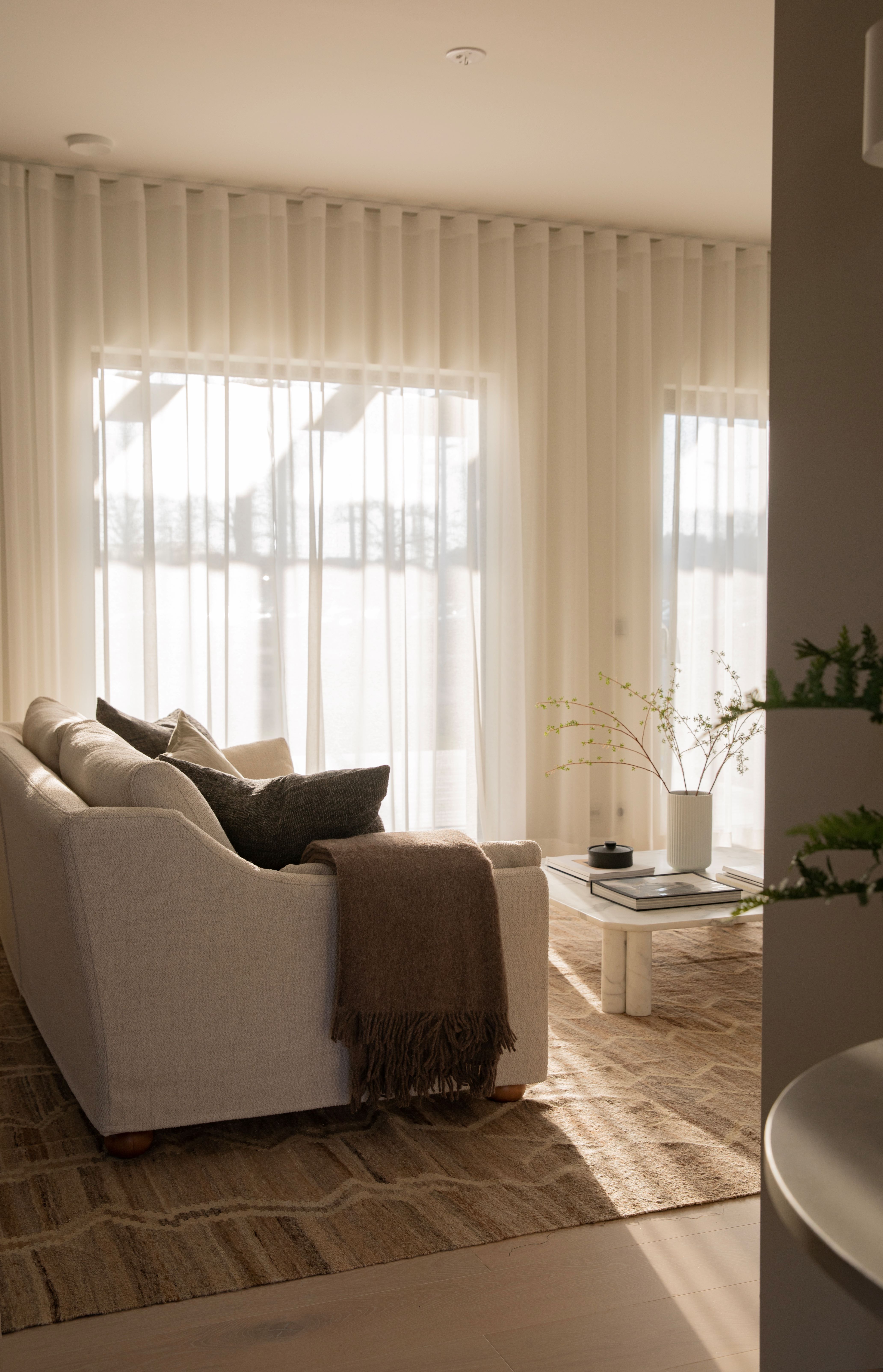 Med denna gardinmodell kan man använda hela tygets bredd i utdraget läge. Dessutom så slipper man se krokar på gardinens baksida om man använder den som rumsavdelare eller mot glaspartier. Mycket enkelt att dra fram och tillbaka, en bra gardin om man skall skuta undan gardinerna.